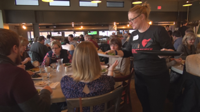 * Enjoying a fun time at the benefit event to help our displaced employees.